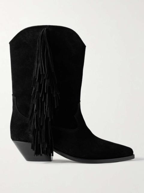 Isabel Marant knows just how to channel Western style in such cool, fresh ways. These 'Duerto' boots are made from velvety suede and have pointed toes, swishy fringing and classic Cuban heels that offer 40mm of lift. Size & Fit Fits true to size, please refer to Isabel Marant size guide below: - FR 35 = UK 2/ US 5 - FR 36 = UK 3/ US 6 - FR 37 = UK 4/ US 7 - FR 38 = UK 5/ US 8 - FR 39 = UK 6/ US 9 - FR 40 = UK 7/ US 10 - FR 41 = UK 8/ US 11 - FR 42 = UK 9/ US 12 Details & Care - Heel measures approximately 40mm/ 1.5 inches - Black suede (Cow) - Pull on