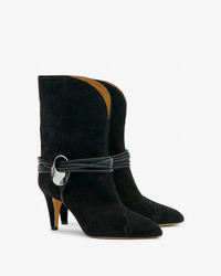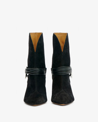 High-heeled suede boots with jewels Uppers with round yokes Pointed toes Leather straps and a silver-finish metal jewel with an "Isabel Marant" engraving High heels covered in leather Soft leather insoles and outsoles Soft leather lining Heel height: 7.5 cm / 3 in. Style: BO0078FBB4A18S01BK EDRIKA 95% suede calfskin leather, 5% bovine leather