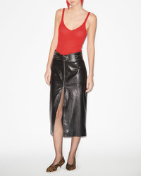 Midi skirt in lambskin leather Done up in front Visible two-way zipper in silver-finish metal Front slit Fitted cut Style: JU0086FC-B3B04I EDIAZ 100% lambskin leather