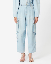 Blue denim pants Side pockets Front zipper and snap button fastening Reference: PA0099FB-A3H23I ELORE 100% Cotton FITTING ADVICE Fits true to size The model is wearing a size FR 38 and she is 1m77