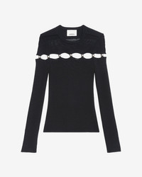 Fine knit sweater with metallic beads Round neckline Reinforced shoulders Long sleeves Openwork design with beads in front and back Ribbed finishes Fitted cut Style: PU0669FAC2L01I01BK ELSIE 68% viscose, 32% polyamide