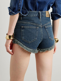 Isabel Marant's 'Eneidao' shorts have wispy fringing along their ultra mini hems, giving them a cool retro feel. They're made from classic blue denim that's perfectly faded. Size & Fit - Fits true to size, take your normal size - High-rise, cut for a slim fit - Particularly short in length - Mid-weight, non-stretchy fabric - Model is 180cm/ 5’11” and is wearing a FR 36 Details & Care - Blue denim - Button and concealed zip fastening at front - 100% cotton - Machine wash - Designer wash: Faded Blue