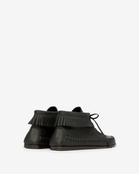 High-top loafers in full-grain leather Perforated round toes with metal flowers Laces Uppers with fringed finishes Edge adorned with soft braided leather Soft leather insoles and outsoles Soft leather lining Style: MC0025FAC1A24S01BK FELSA 100% bovine leather
