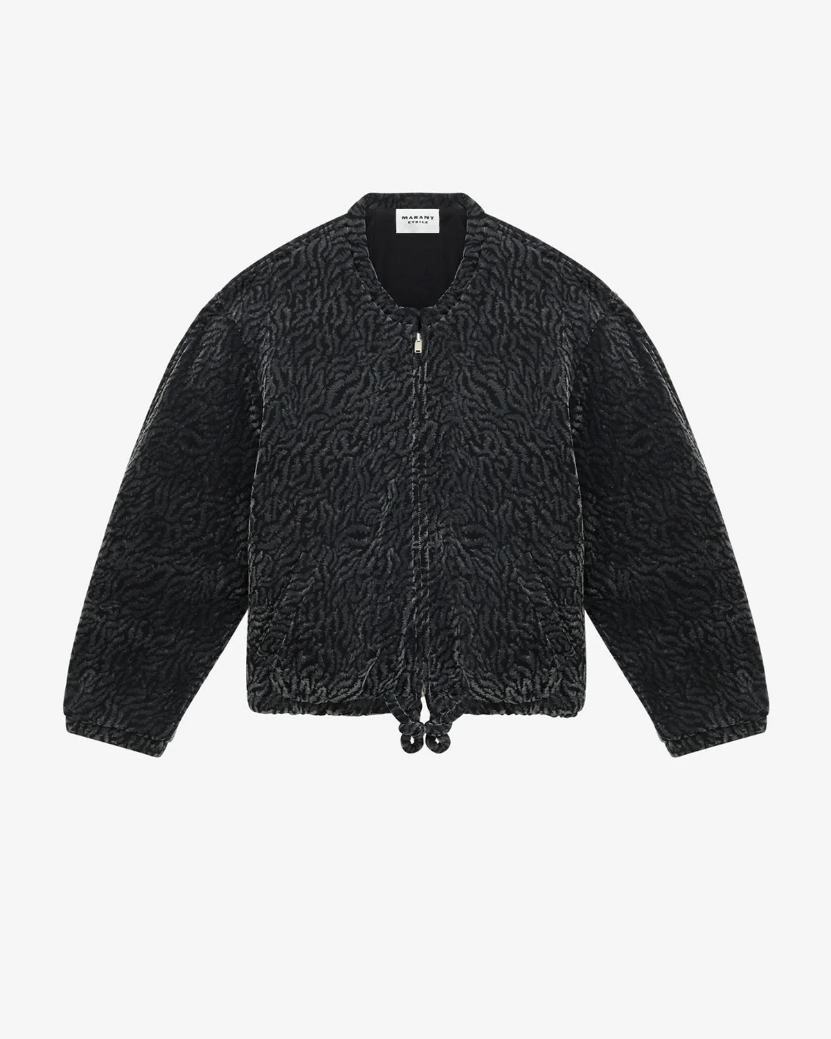 Bomber jacket in burnout velvet with a zebra pattern Round padded neckline Long sleeves Done up with a visible metal zipper Snap-fastened pockets on the sides Padded drawstring with slider Fleece lining Cropped cut 75% cotton, 25% polyester
