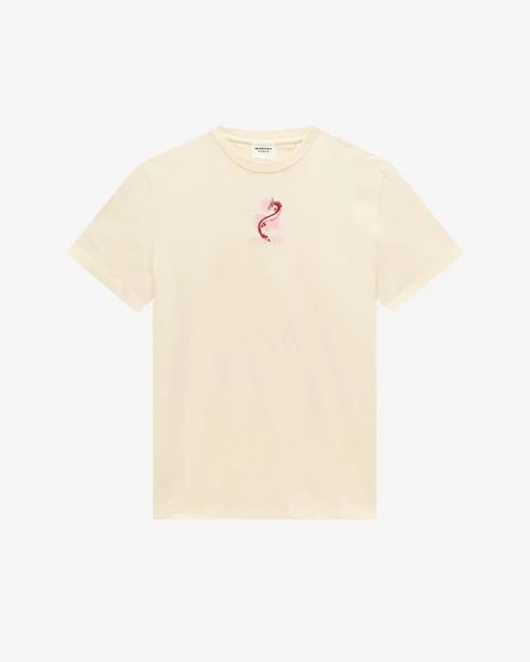 Cotton tee-shirt with short sleeves Round neck "Marant'' logo Reference: TS0178FAB1N01O90BE ABYO 100% Cotton 100% cotton Care & Sustainability Machine wash on a gentle cycle, inside out and at a maximum temperature of 30°C For more details, see the instructions on the composition label Organic Textile Certified by Ecocert Greenlife - 257833 The GOTS certification attests that the cotton used for this item is organic. It guarantees respect for the environment and responsible social practices at all stages of its production.