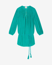 80% Cotton, 20% Viscose Short cotton dress with long sleeves Front button closure Drawstring waist Pleated details on front and back Tassel details Style: RO0392FAB1J17E60ED ADELIANI