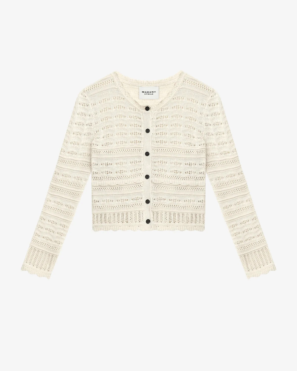 Cardigan in openwork cotton knit Round neckline Long sleeves Buttoned front Short and fitted cut Style: CA0105FAC1L15E23EC AJALINE 100% cotton