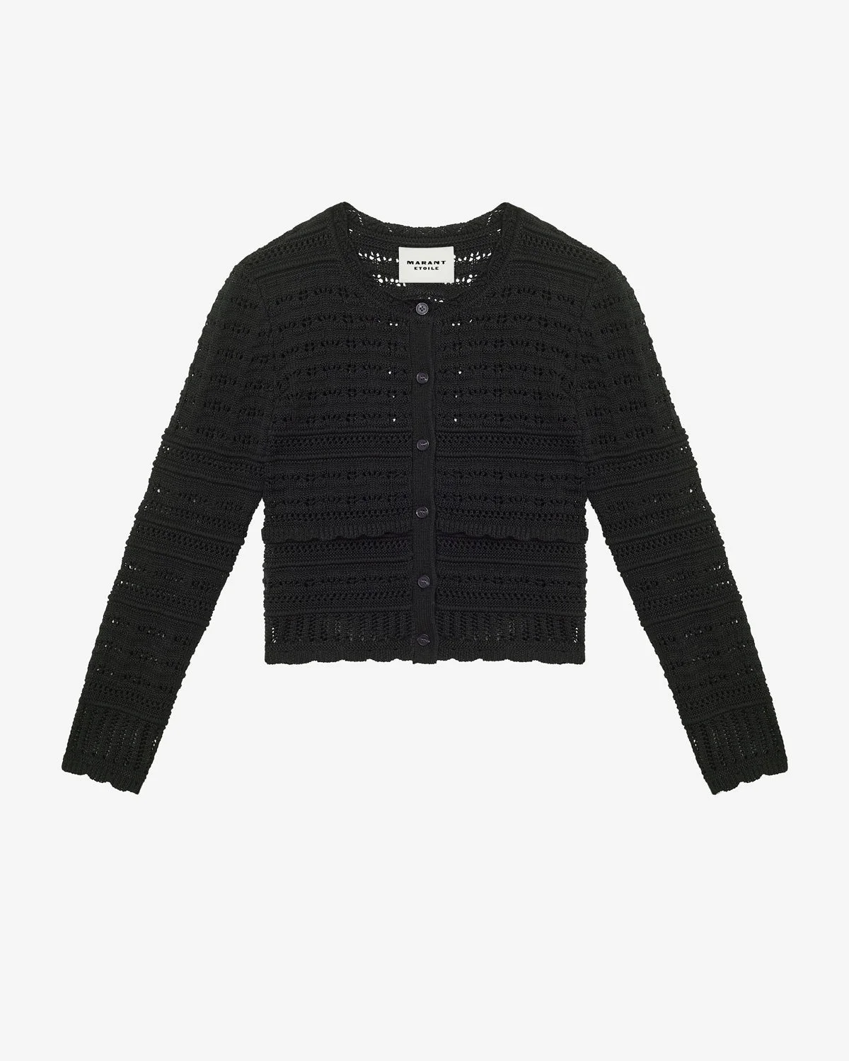 Cotton openwork knit cardigan Round neckline Long sleeves Buttoned front Short and fitted cut Style: CA0105FAC1L15E01BK AJALINE 100% cotton