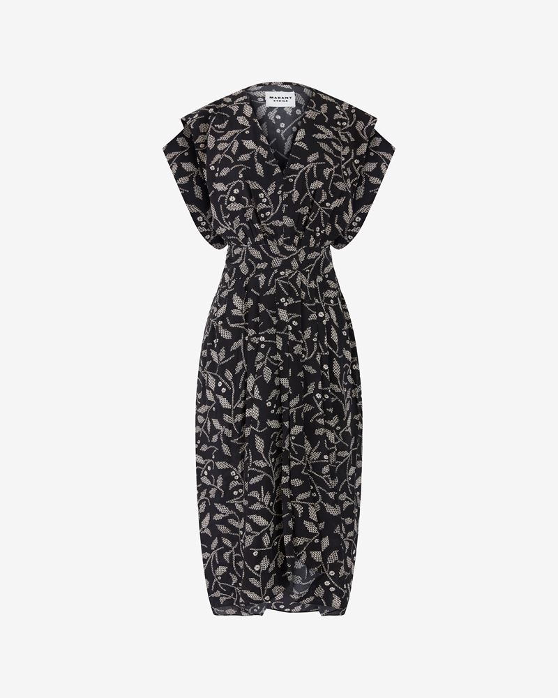 Printed midi dress with long sleeves V neck Reference: RO0019FA-A1J44E ALMEYA 100% Viscose FITTING ADVICE Fits true to size The model is wearing a size FR 38 and she is 1m77 (5'9")