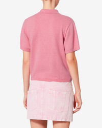 Cotton and wool blend knit polo Polo collar extending into a button tab Short sleeves "IM" logo embroidered on the chest Ribbed finishes Fitted cut Style: PU0849FAC1L17EBGGA ALTHEA 70% cotton (1), 30% wool Care & Sustainability Cold hand wash with suitable detergent For more details, see the instructions on the composition label