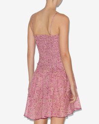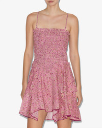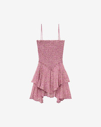Smocked pointed lightweight cotton tapestry print dress Thin adjustable straps Smocked fitted bustier Skirt with asymmetrical pointed frills Short and flared cut Style: RO0246FAC3J06E40PK ANKA 100% cotton