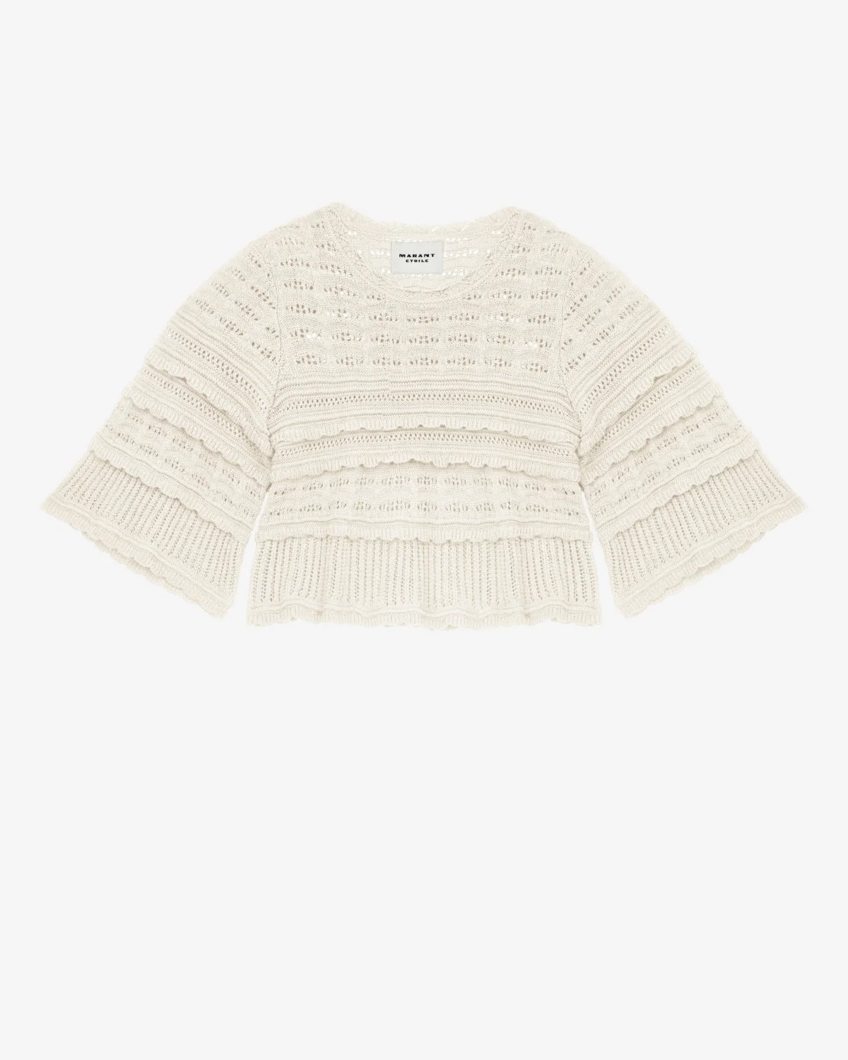 Sweater in openwork cotton knit Round neckline Long flared sleeves Loose fit Style: PU0661FAC1L15E23EC AZELIA 100% cotton