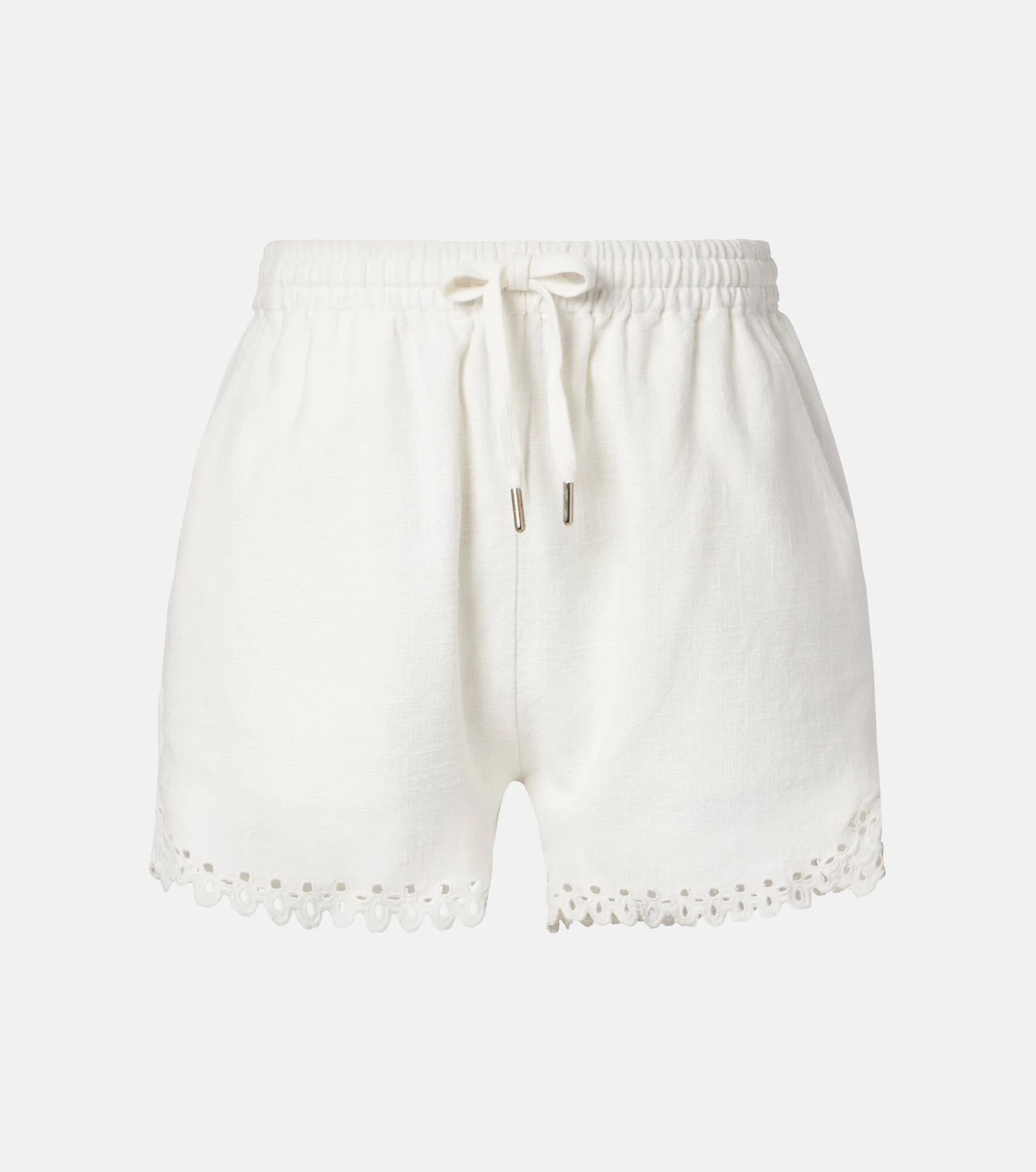 Hailing from Paris, Marant Etoile captures the art of French nonchalance through breezy yet polished staples. Made from pure cotton, the Balyme shorts feature a drawstring waist and are accented with embroidered details. Product Details - Material: 100% cotton - Care instructions: machine wash at 30 degrees - Made in India - Color: white - Designer color name: White - Embroidery: 100% polyester - Elasticated drawstring waist - Pockets: slant pockets - Item number: P01132159 Size & Fit - True to size - Elasticated waist - Adjustable at the waist - Non-stretchy fabric - Wide-leg - High-waisted - The model seen in the picture is 178cm-5'10" and wearing a size FR 36