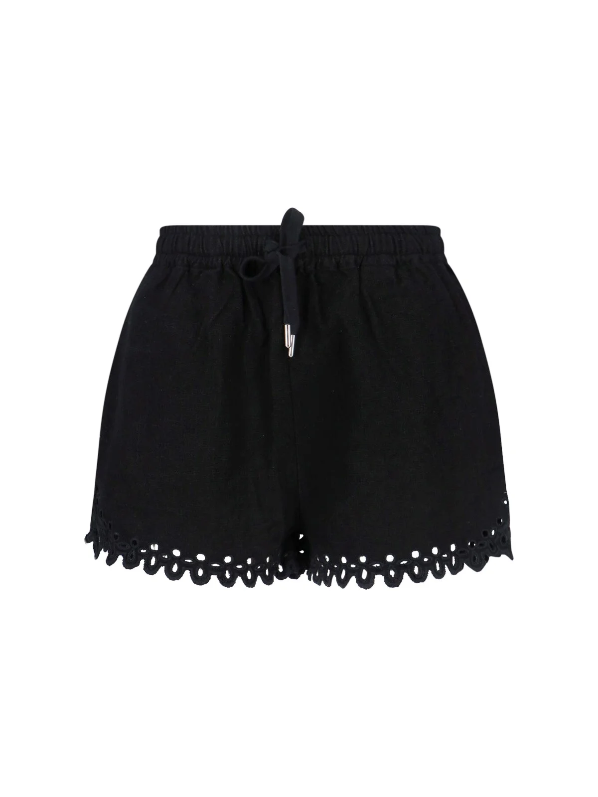 ISABEL MARANT ETOILE 'BALYME' SHORTS IN BLACK COTTON WITH ELASTIC MID WAISTBAND, LACE-UP CLOSURE, TWO SIDE POCKETS, ONE BACK SLIP POCKET, CUT-OUT DETAILS ON THE HEM, STRAIGHT LEG. PRODUCT INFO PRODUCT CODE SH0267FA D1J04E02FK COMPOSITION: 100% COTTON SIZE AND FIT: REGULAR FIT MADE IN: INDIA