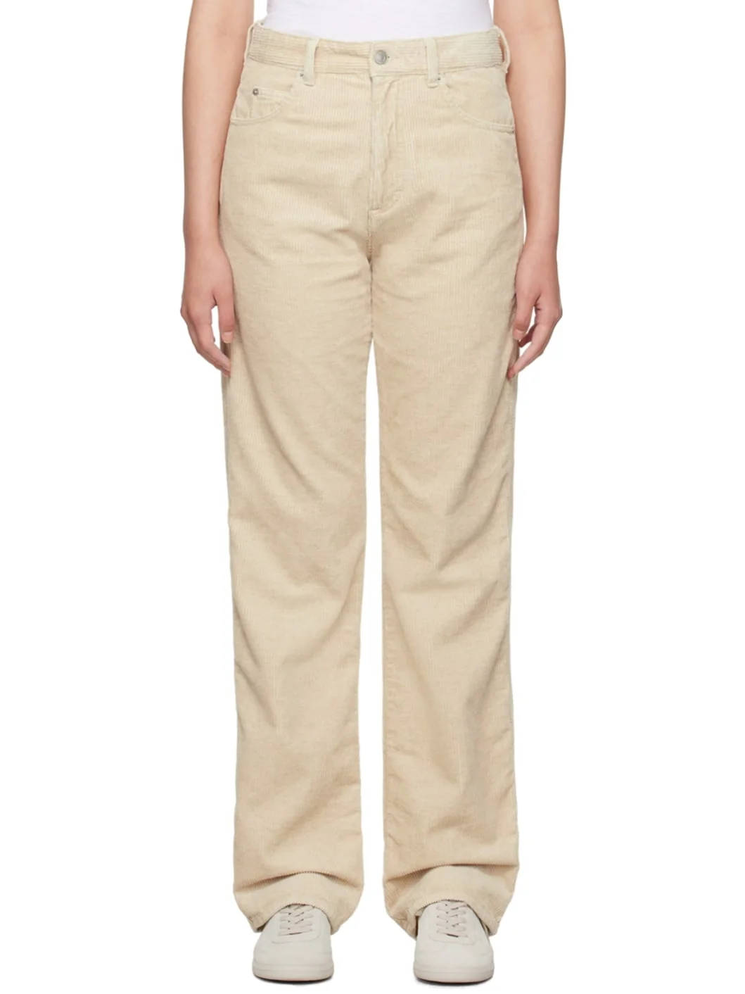 Cotton- and linen-blend corduroy trousers. · Belt loops · Five-pocket styling · Zip-fly · Logo flag at back Supplier color: Beige Body: 74% cotton, 26% linen. Lining: 100% cotton. Made in Tunisia 232599F087003
