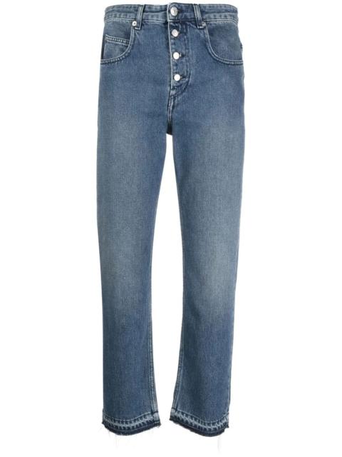 Belden straight-leg jeans These Belden jeans from Isabel Marant Etoile boast a skinny silhouette with a tapered leg. The design is finished with a frayed edge, creating a love-worn feel to the garment. Highlights - Blue - Cotton - Whiskering effect at the thighs - Frayed edge - Slim cut - Belt loops - Classic five pockets - Cropped leg Imported Composition Outer: Cotton 100% Lining: Polyester 65%, Cotton 35% SIZE & FIT Model measurements Height 5 ft 10 in(1.78 m) Bust/Chest 31.49 in(80 cm) Hips 35.43 in(90 cm) Waist 24.4 in(62 cm) FittingInformation This piece fits true to size. We recommend you get your regular size Designed to be fitted at the waist and hips, loose over the leg Made with a mid-weight fabric Washing instructions Machine Wash