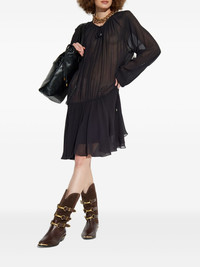 drawstring tiered dress black sheer fabric drawstring neckline long sleeves gathered waist Imported Composition Viscose 100% Washing instructions Read Manufacturer Guidelines