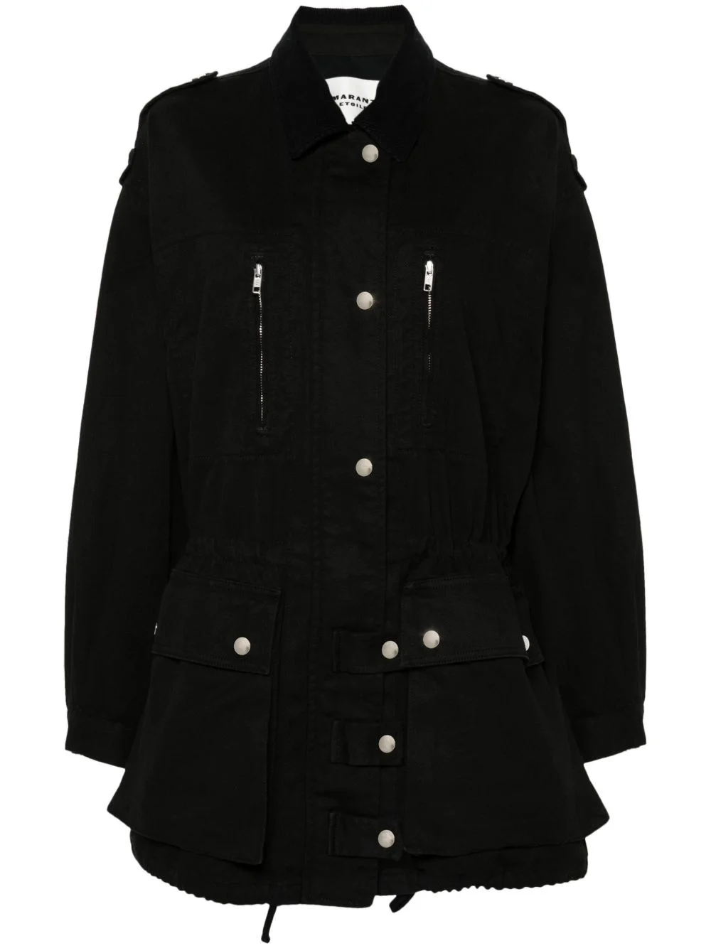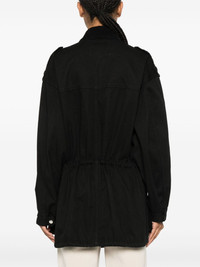 Joanna drawstring jacket Highlights - Black - Cotton - Twill weave - Corduroy collar - Front press-stud and zip fastening - Long sleeves with press-stud fastening cuffs - Drawstring waist - Two zip-fastening chest pockets - Two front flap pockets - Straight drawstring hem - Thigh-length Imported Composition Lining: Cotton 100% Outer: Cotton 100% SIZE & FIT Model measurements Height 5 ft 10 in(1.78 m) Bust/Chest 32.67 in(83 cm) Hips 35.43 in(90 cm) Waist 23.22 in(59 cm) FittingInformation Designed to be unstructured, offering a loose fit throughout The adjustable drawstring means that you can adjust this piece’s fit to suit your comfort and preference Sturdy and hard-wearing, this denim piece offers no stretch This piece fits true to size – take your usual size