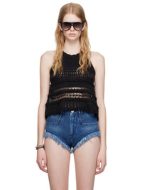 Crocheted cotton tank top. · Crewneck · Scalloped edge at hem · Racer back Supplier color: Black 100% cotton. Made in Italy 231599F111011