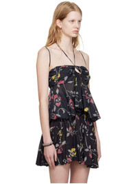 Semi-sheer organic cotton voile tank top. Floral pattern printed throughout. · Self-tie halter strap at keyhole neck · Fixed spaghetti straps · Zip closure at back · Partially lined Supplier color: Black 100% organic cotton. Made in India 231599F111004