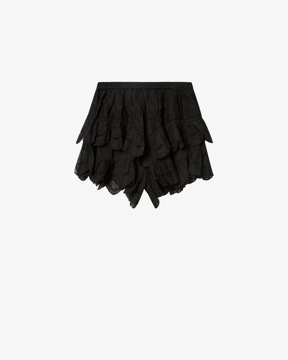 Jocadia organic cotton and floral lace shorts Elastic waist Frills with lace ribbons Flowing cut with see-through effect Style: SH0021FED1J05E01BK JOCADIA 100% cotton (1) Care & Sustainability Machine wash on a gentle cycle, inside out and at a maximum temperature of 30°C For more details, see the instructions on the composition label the history and environmental impact of this product