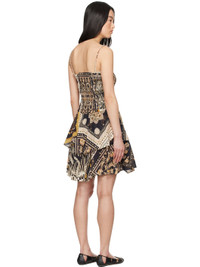 Cotton voile dress. Graphic pattern printed throughout. · Square neck · Shirring at bodice · Ruffles at tiered handkerchief hem · Fixed spaghetti straps Supplier color: Black/Ochre 100% cotton. Made in India 251599F052000