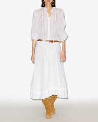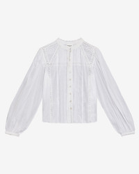 Lace and cotton voile blouse Round neckline with lace trim Openwork lace shoulder yokes Buttoned front Long sleeves with thin buttoned cuffs Straight cut Style: HT0678FAC3J05E20WH GREICY 100% cotton