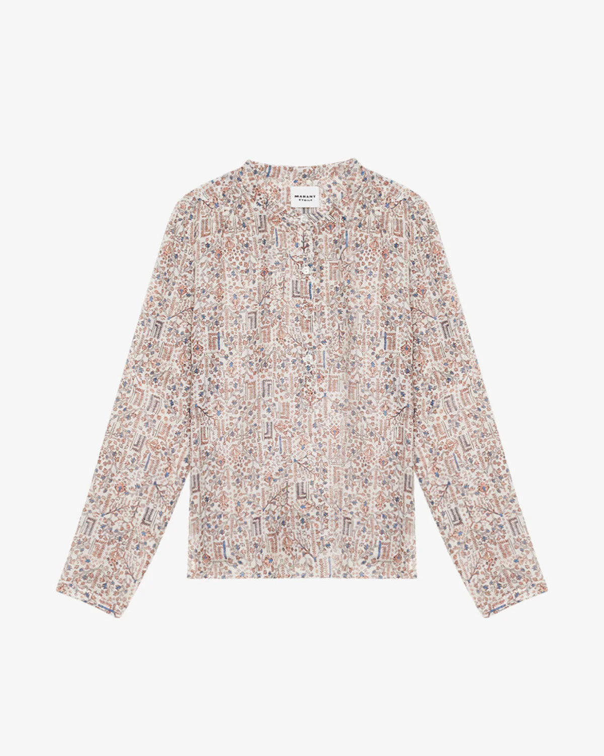 Printed cotton voile tapestry pattern blouse Round neckline Button tab Shoulder yokes Long sleeves Thin buttoned cuffs Relaxed fit Style: HT0029FAC3J06E23EC MARIA 100% cotton