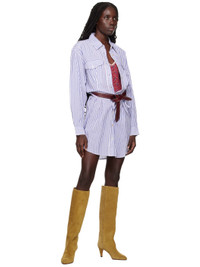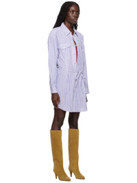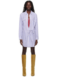 Plain-woven cotton dress. Jacquard stripes throughout. · Spread collar · Button closure · Patch pockets at chest · Inverted box pleats at front and back · Detachable self-tie strap and belt loops · Shirttail hem · Double-button barrel cuffs · Logo-engraved hardware Supplier color: Azure 100% cotton. Made in India 241599F052015