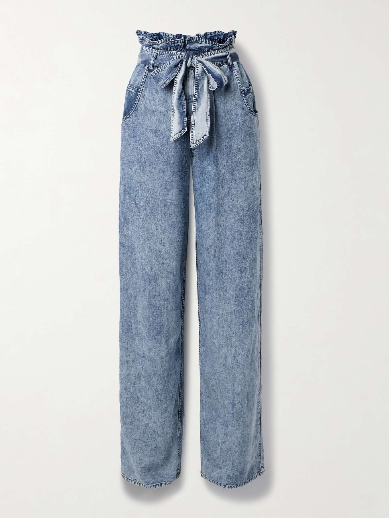 EDITORS'NOTES Isabel Marant’s ‘Priana’ pants are made from lightweight Lyocell-chambray. They have a high-rise waist threaded with a detachable self-tie belt that creates a paperbag-effect and falls to wide legs. SIZE & FIT Model measurements: - Fits true to size, take your normal size - High-rise, cut wide-leg fit - Elasticated at the waist for a flexible fit - Lightweight, non-stretchy fabric - Model is 175cm/ 5'9" and is wearing a FR 36 - Bust: 81cm/ 32" - Waist: 65cm/ 26" - Hip: 90cm/ 35" DETAILS & CARE - Tonal-blue Lyocell-chambray - Button and concealed zip fastening at front - 100% Lyocell; pocket lining: 100% cotton - Machine wash