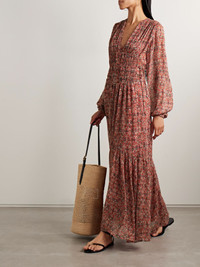 Marant Etoile's 'Briane' dress has an effortless, bohemian vibe. It's made from georgette printed with an abstract motif and has pleats that trace from the shoulders to the gathered waist. We think it looks especially cool with knee boots. Size & Fit - Fits true to size, take your normal size - Designed for a slightly loose fit, use the adjustable drawstring to cinch in at the waist - Lightweight, non-stretchy fabric - Model is 180cm/ 5'11" and is wearing a FR 36 Details & Care - Multicolored georgette - Button fastenings along front - 100% viscose; lining: 100% viscose - Dry clean - Designer color: Rust