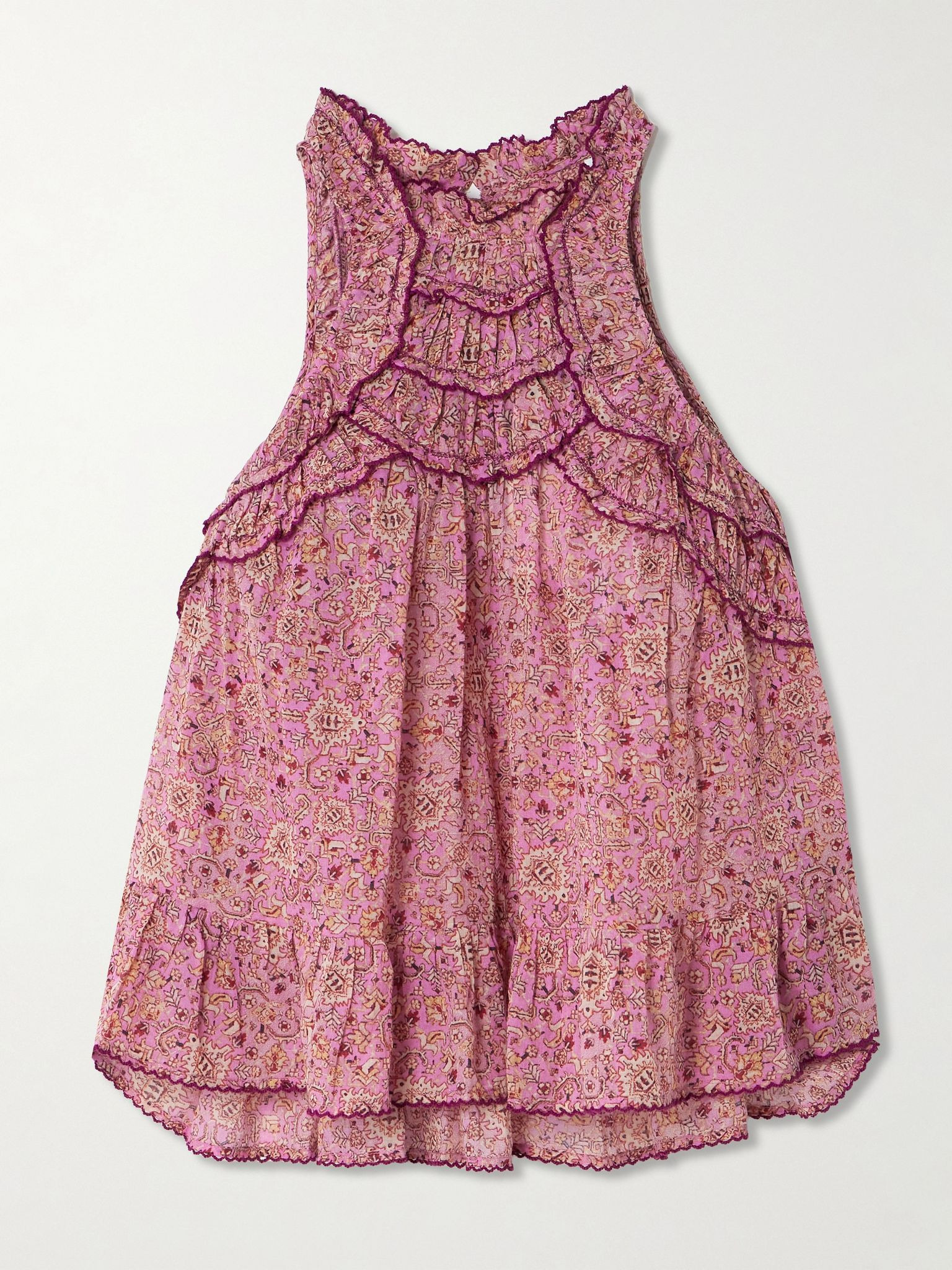Carlee ruffled embroidered floral-print cotton-voile top Pink