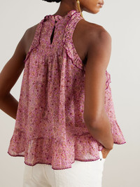 Marant Etoile's 'Carlee' top channels the label's bohemian spirit. It's cut from airy cotton-voile printed with tapestry-inspired florals and traced with ruffled, embroidered trims. Pair yours with denim or the matching skirt. Size & Fit - Fits true to size, take your normal size - Intended for a slightly loose fit - Lightweight, non-stretchy fabric - Model is 180cm/ 5'11" and is wearing a FR 36 Model measurements: - Bust: 80cm/ 31.5" - Waist: 65cm/ 25.5" - Hip: 89cm/ 35" Details & Care - Multicolored cotton-voile - Button-fastening keyhole at back - 100% cotton - Unlined - Machine wash