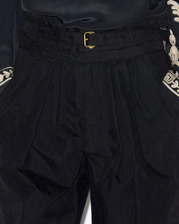 Sporty plain-colored crisp cotton pants Fitted waistband with loops Matching removable belt with metal buckle Done up with visible snap buttons and a hidden zipper Gathered waist Italian pockets on the sides Raglan pockets in back Antique gold-finish metal details High waist Loose fit Style: PA0372FBC3G06E02FK CELIA 100% cotton