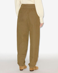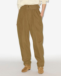 Sporty plain-colored crisp cotton pants Fitted waistband with loops Matching removable belt with metal buckle Done up with visible snap buttons and a hidden zipper Gathered waist Italian pockets on the sides Raglan pockets in back Antique gold-finish metal details High waist Loose fit Style: PA0372FBC3G06E67KI CELIA 100% cotton