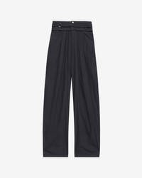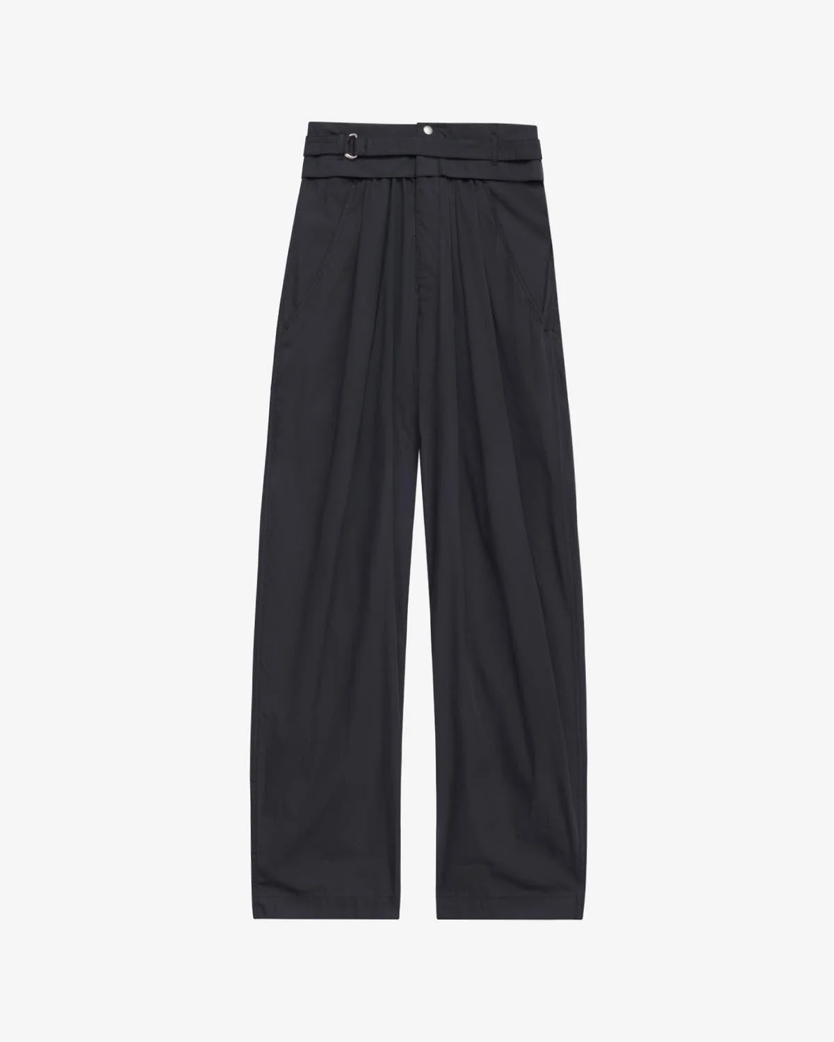 Sporty style plain-colored cotton blend pants Fitted waistband with loops Matching belt with metallic details Done up with visible snap buttons and a zipper Gathered waist Slant pockets on the sides Silver-finish metal details Medium-rise waist Relaxed straight cut Style: PA0423FA-B3C02E CELIANA 80% cotton, 20% polyamide