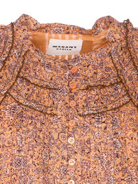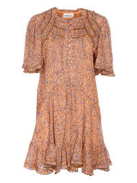 ruffled balloon-sleeve midi dress Highlights - Light orange - All-over print - Button closure - Ruffled neckline - Balloon sleeves - Ruffled hemline Imported Composition Cotton 80%, Viscose 20% Washing instructions Read Manufacturer Guidelines
