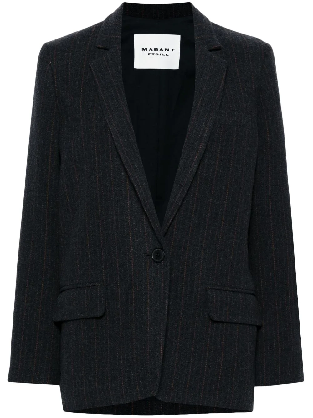 Charlyne blazer Highlights - Midnight blue - Wool blend - Pinstripe pattern - Front button fastening - Notched lapels - Long sleeves - Chest welt pocket - Two side flap pockets - Full cotton lining - Straight hem Imported Composition Outer: Wool 66%, Polyamide 33%, Elastane 1% Lining: Cotton 100%, Viscose 53%, Cupro 47% SIZE & FIT Model measurements Height 5 ft 11 in(1.8 m) Bust/Chest 33.07 in(84 cm) Hips 37.4 in(95 cm) Waist 25.19 in(64 cm) FittingInformation Designed to be unstructured, offering a loose fit throughout The internal shoulder pads offer a structured shape Made from a midweight fabric