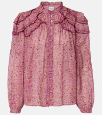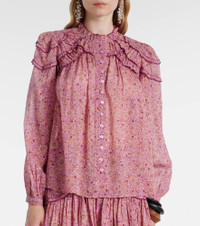 Add a touch of Parisian romance to your wardrobe with the Christa blouse by Marant Etoile. Crafted from organic cotton with a charming print, this piece features delicate ruffles at the shoulders and a buttoned front closure. Product Details - Material: 100% cotton (organic) - Care instructions: machine wash at 30 degrees - Made in India - Designer color name: Pink - Item color: pink, multicolor - Embroidery: 100% polyester - Closure: buttoned front - Collar: mockneck - Cuff: one button - Item number: P01074527 Size & Fit - True to size - Designed for a loose fit - Non-stretchy fabric - Falls to the hip - The model seen in the picture is 178cm-5'10" and wearing a size FR 36