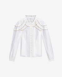 Gathered cotton blend blouse Round neckline with gathered finishes Buttoned front Gathered front and shoulder details Long sleeves with thin buttoned cuffs Rounded hem Relaxed fit Style: HT0681FB-B3J04E CHRISTA 80% cotton, 20% viscose Care & Sustainability Dry clean only For more details, see the instructions on the composition label the history and environmental impact of this product