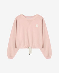 Cropped cotton jersey sweatshirt Ribbed trim Flocked logo at the chest Round neck Drop shoulder long sleeves Cropped cut Drawstring hem Style: SW0005FAB1M01O40LK MARGO 88% cotton, 12% polyester Care & Sustainability Machine wash on a gentle cycle, inside out and at a maximum temperature of 30°C For more details, see the instructions on the composition label