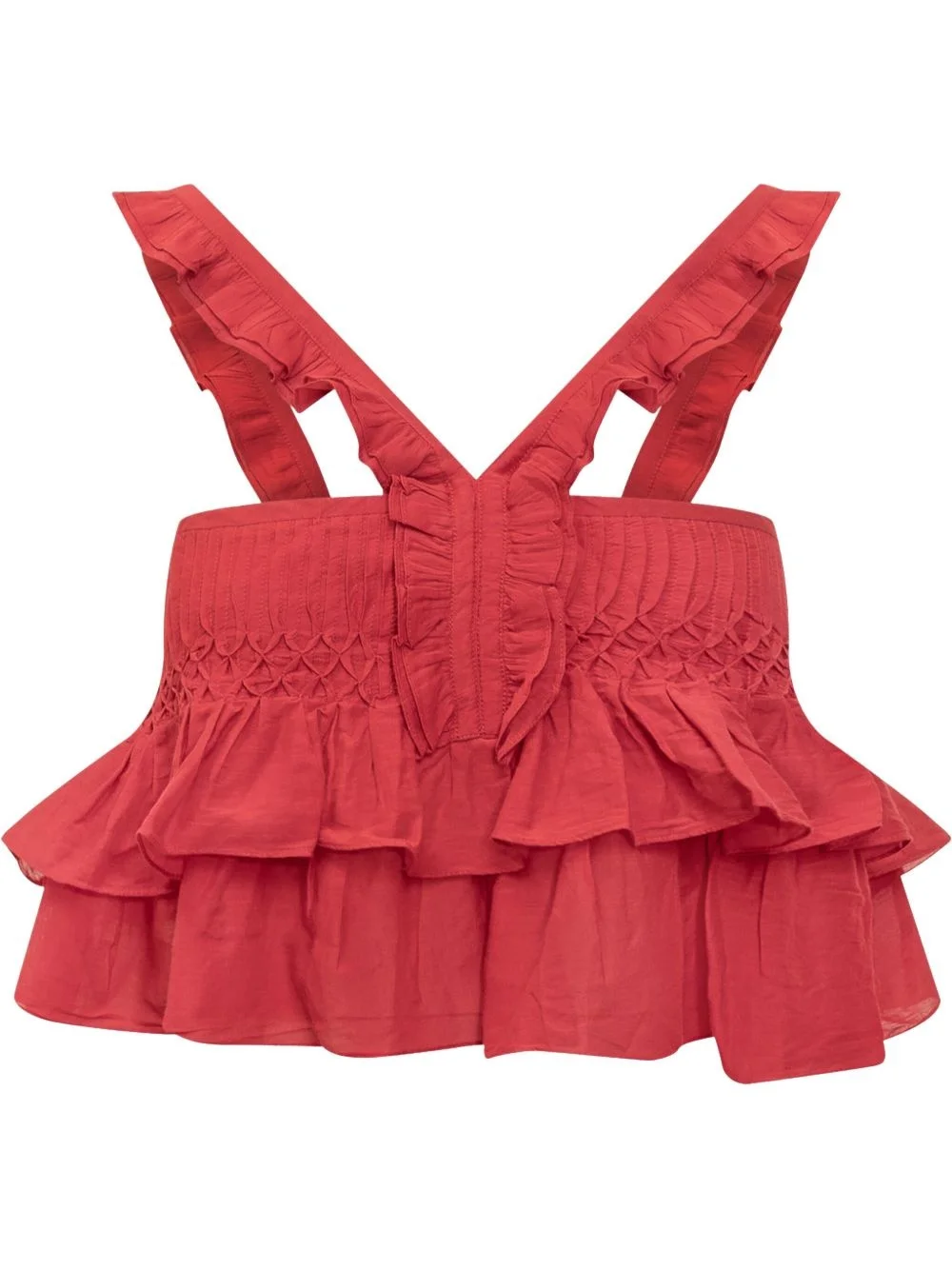 Daliana top Highlights - Poppy red - Concealed rear zip fastening - Layered design - Ruffled trim - V-neck Imported Composition Cotton 80%, Viscose 20%
