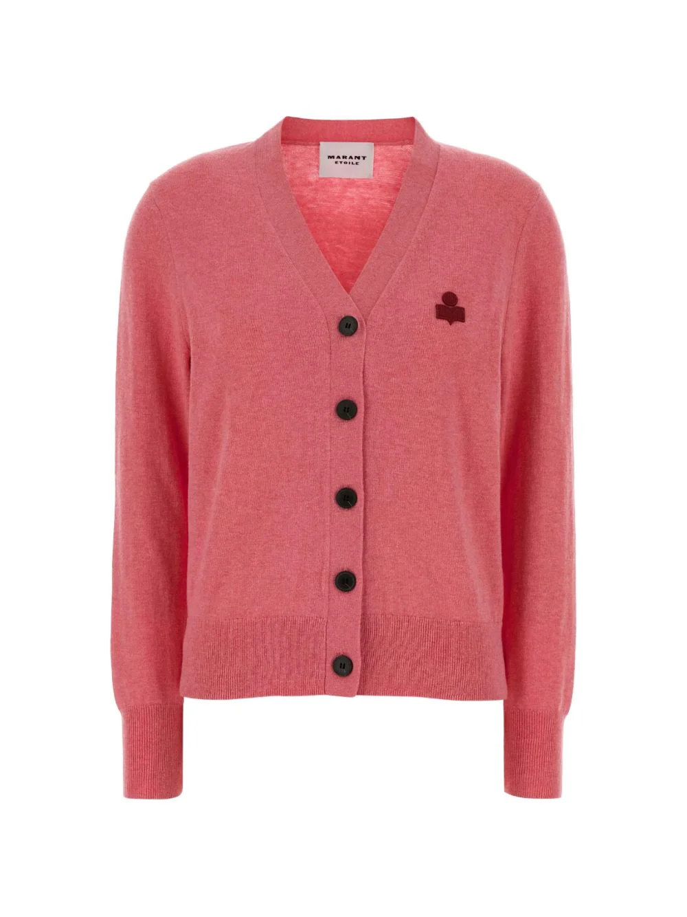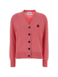 buttoned cardigan Highlights - Dark pink - V-neck - Front button fastening - Long sleeves - Chest emblem - Ribbed hem Imported Composition Cotton 70%, Wool 30% Washing instructions Read Manufacturer Guidelines
