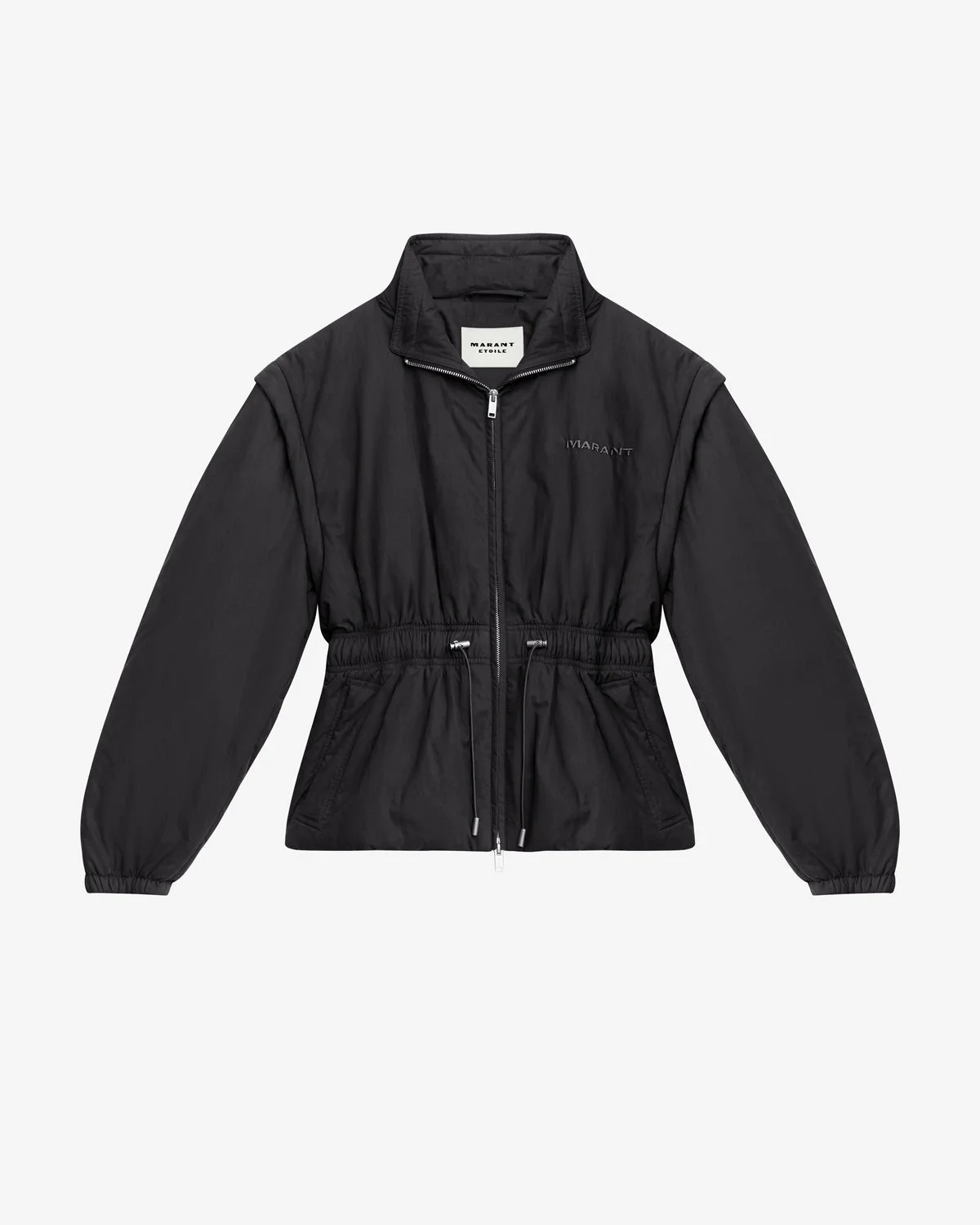 Quilted cotton blend coat Double stand-up collar Turn-up shoulders Long sleeves with tapered cuffs Done up with a two-way zipper Matching "Marant" logo embroidered on the chest Elastic waist with strings and stoppers Side pockets Cotton blend lining Cropped cut, tightened at the waist Removable sleeves Style: MA0007FBC1C01E01BK DASTYNI 100% cotton