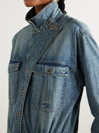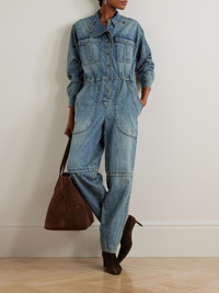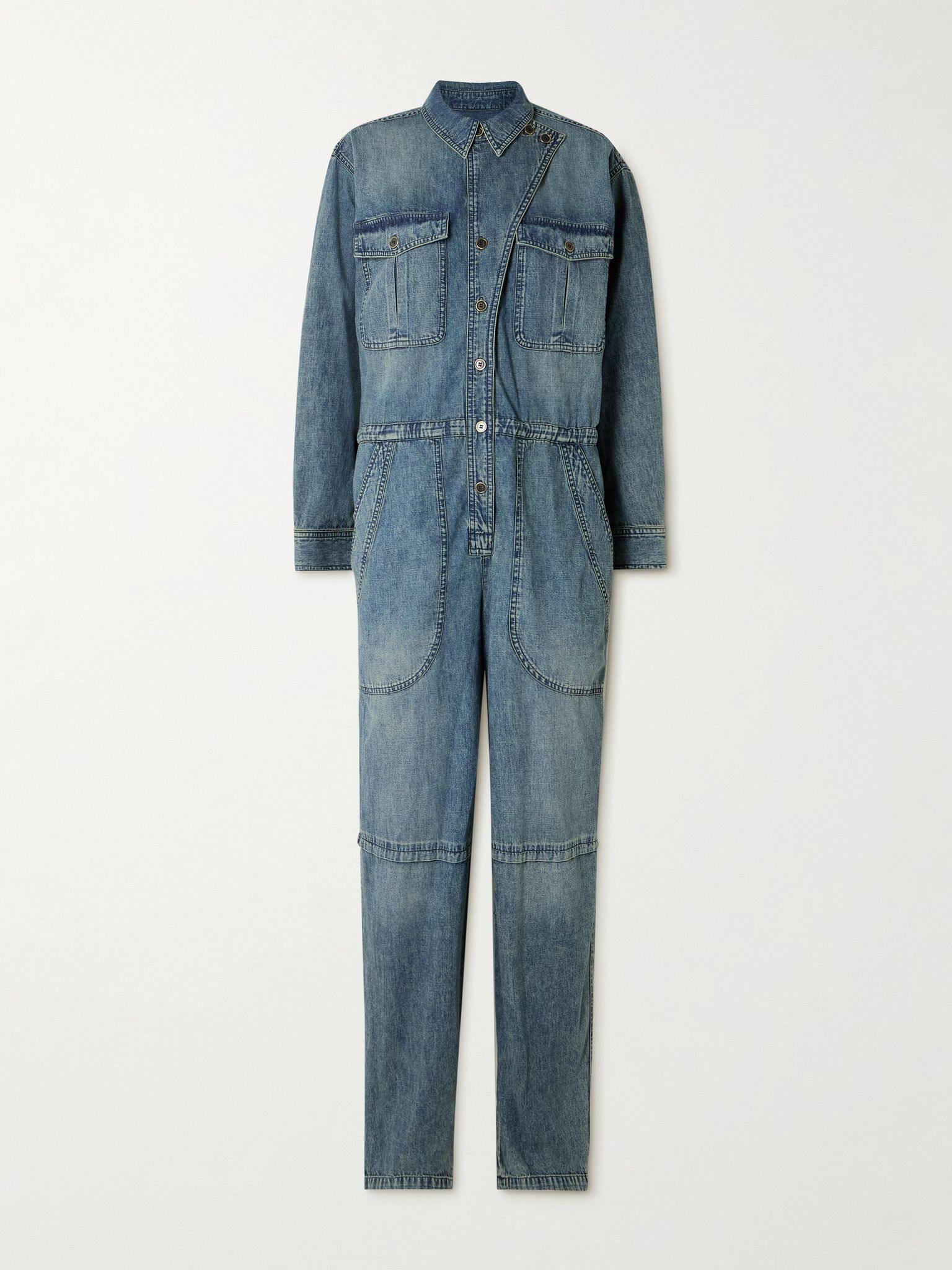 Marant Etoile's collections channel Parisian ease with styles like this 'Nadia' jumpsuit. Cut from denim, it's fitted with a discreet drawstring at the waist to define the relaxed profile. Turn to the label's archives for styling inspiration. Size & Fit - Fits true to size, take your normal size - Designed for a relaxed fit - Internal drawstring waist for a comfortable fit - Mid-weight, non-stretchy fabric - Model is 180cm/ 5'11" and is wearing a FR 36 Model measurements: - Bust: 80cm/ 31.5" - Waist: 65cm/ 25.5" - Hip: 89cm/ 35" Details & Care - Blue denim - Button fastenings along front - 100% cotton - Unlined - Machine wash