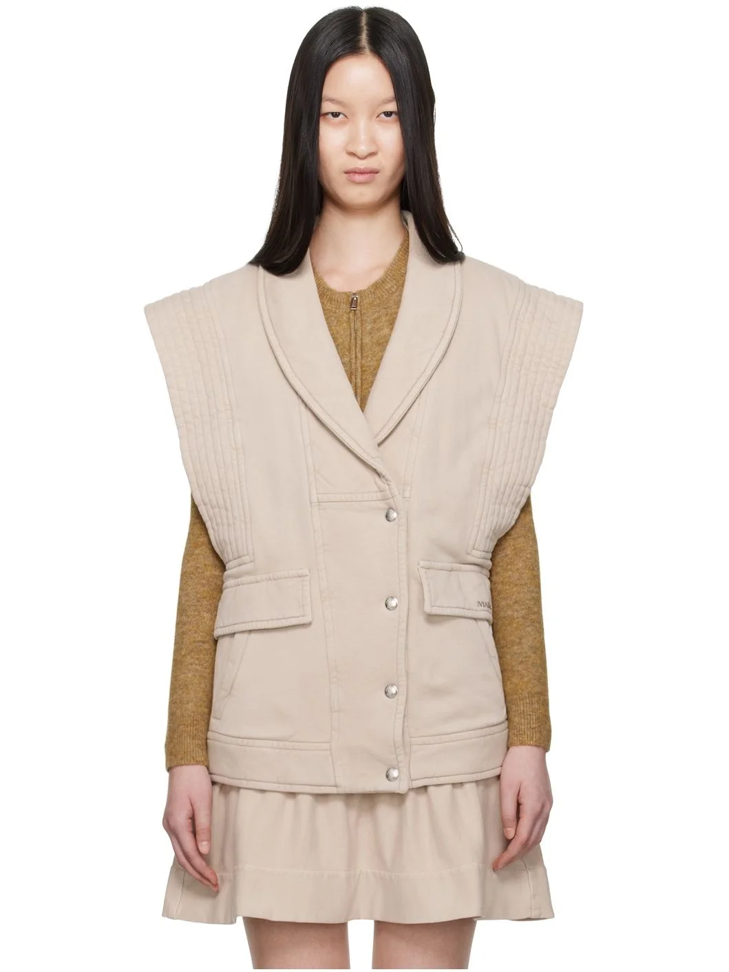 Padded cotton jersey vest. · Shawl lapel · Double-breasted press-stud closure · Flap pockets and welt pockets · Logo embroidered at pocket · Quilted cap sleeves · Logo-engraved silver-tone hardware Supplier color: Beige Body: 100% cotton. Trim: 100% polyester. Fill: 100% polyester. Lining: 100% cotton. Made in Portugal 242599F068000