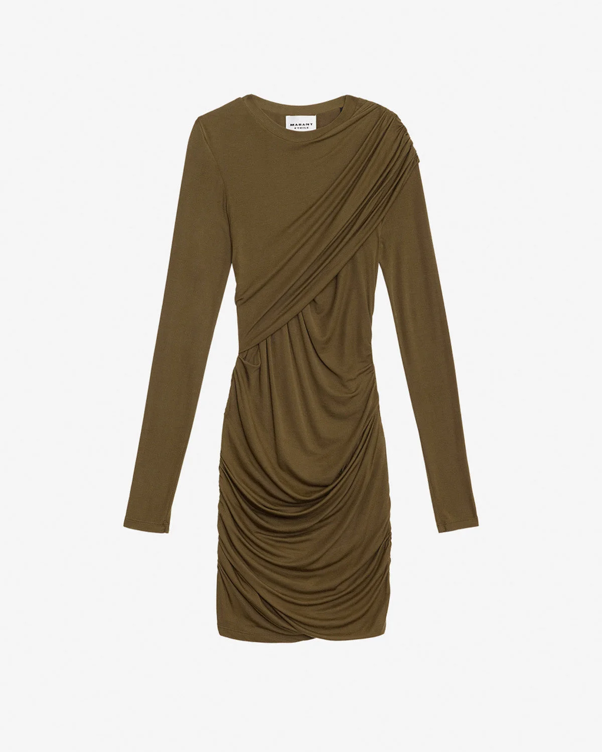 Short draped plain-colored jersey dress Round neckline Gathered shoulder yoke Long sleeves Gathered sides Fitted cut Style: RO0842FAC3K01E67KI DENISE 97% modal, 3% elastane