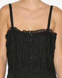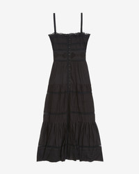 Dress in elaborate cotton voile Lace straps Straight neckline Buttoned front Lace, openwork English embroidery, pleats, and gathers Long flared cut Style: RO0708FAC1J15E01BK DIVINE 100% cotton