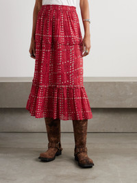 Diya tiered printed cotton-voile midi skirt Red