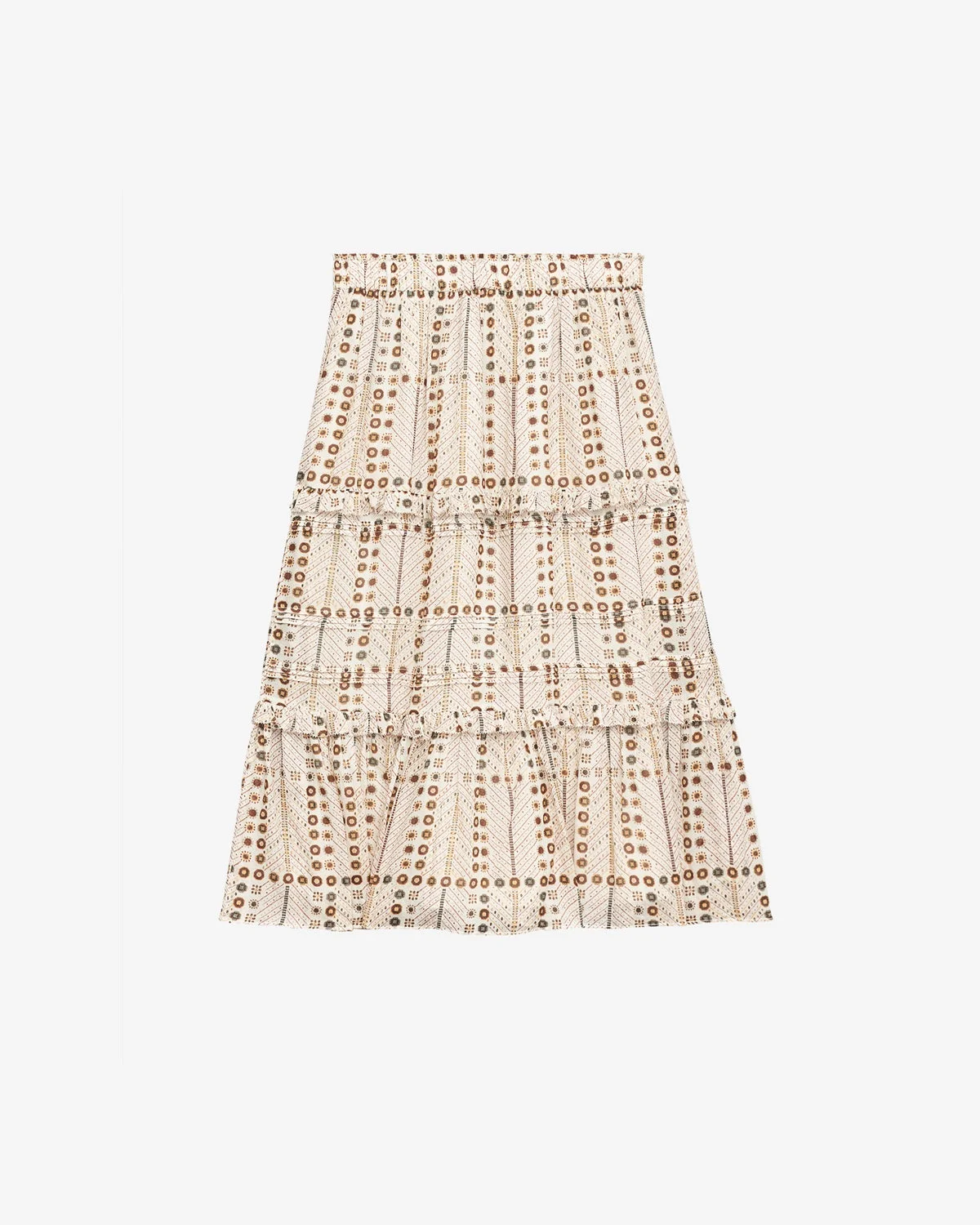 Long skirt in printed cotton voile Elastic waist Pleated and ruffled details Lightweight lined fabric Flared cut Style: JU0239FAC1J19E23EC DIYA 100% cotton